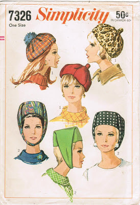 This pattern for hats from 1967 provides both a very Mod turban-style pill box hat and beret with some saucy variations. How can you beat that combination? Seamstress Michelle chose to sew view 1.