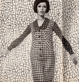 In my last post, I featured a vintage sewing pattern and polka dot fabric from the 1930s. Very lovely and so charming! In this post, I pull you 30 years later to the mid-1960s, when Mod fashion was just getting started. These images, also featuring sewing patterns sewn with polka dot fabric, are from a Vogue Pattern magazine, April-May 1965 issue. Enjoy and be inspired!